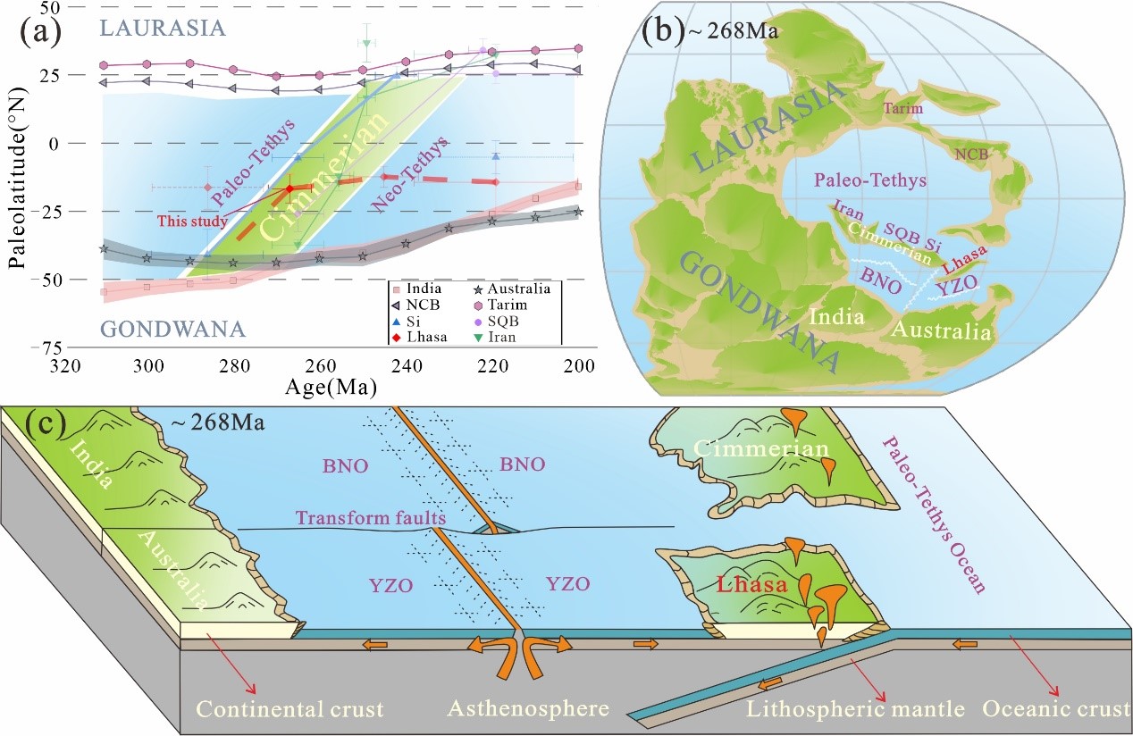 拉萨地块位于青藏高原南部,夹持于雅鲁藏布江缝合带和班公湖-怒江缝合带之间,这两条缝合带被认为是新特提斯洋向东延伸的地质遗迹。新特提斯洋在古生代晚期至中生代早期将冈瓦纳大陆与劳亚大陆分隔开。因此,厘定拉萨地块在二叠纪时期的古地理位置和运动史对揭示雅鲁藏布江洋、班公湖-怒江洋与新特提斯洋的时空演化关系具有关键意义。