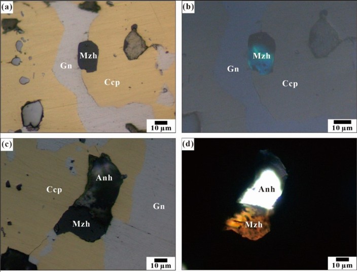 图1 梅州天蓝石的显微照片,注:Mzh—梅州天蓝石。