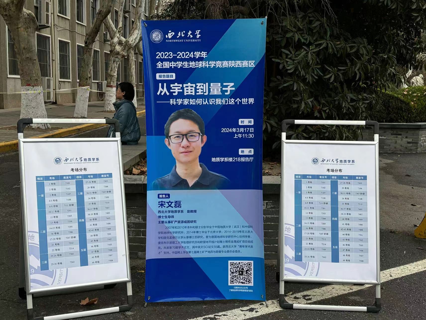 为扩大地球科学奥林匹克竞赛和我校地质学科影响力,组委会赛后在西北大学校园内开展“Dr.Earth移动地质博物馆”科普展览,邀请宋文磊副教授做“从宇宙到量子-科学家如何认识我们这个世界”科普讲座,200余名参赛学生参加科普活动。同时在各考点积极布置地学知识科普、学校及学科宣传展板,持续提升我校地质学科知名度,推动地球科学知识普及。