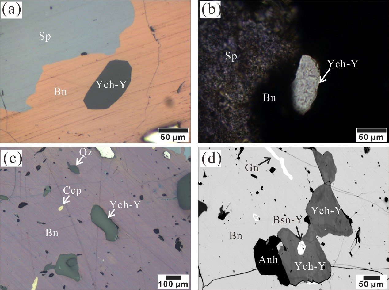 图1 毓川碳钇矿镜下照片. Ych-Y = 毓川碳钇矿