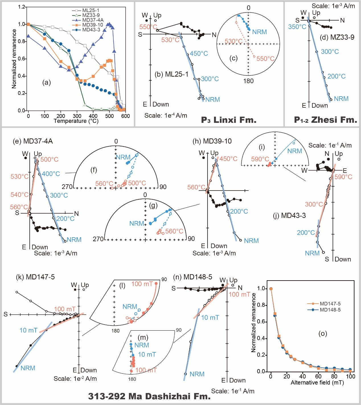 图2. 松辽地块西缘上石炭统-上二叠统代表性样品退磁结果。