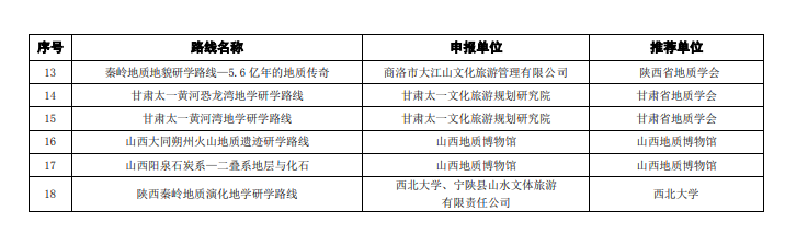 437bwin必赢国际官网申报的“陕西秦岭地质演化地学研学路线”获批精品地学研学路线