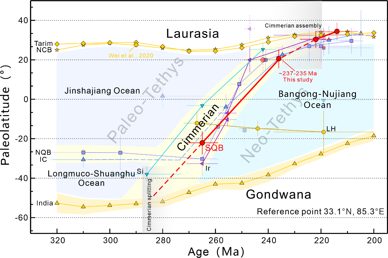 Wei, B., Cheng, X., Domeier, M., Zhou, Y., Chen, Q., Jiang, N., Xing, L., Zhang, D., Li, T., Liu, F., 2023. Paleomagnetism of Late Triassic Volcanic Rocks From the South Qiangtang Block, Tibet: Constraints on Longmuco-Shuanghu Ocean Closure in the Paleo‐Tethys Realm. Geophysical Research Letters 50, e2023GL104759. https://doi.org/10.1029/2023GL104759