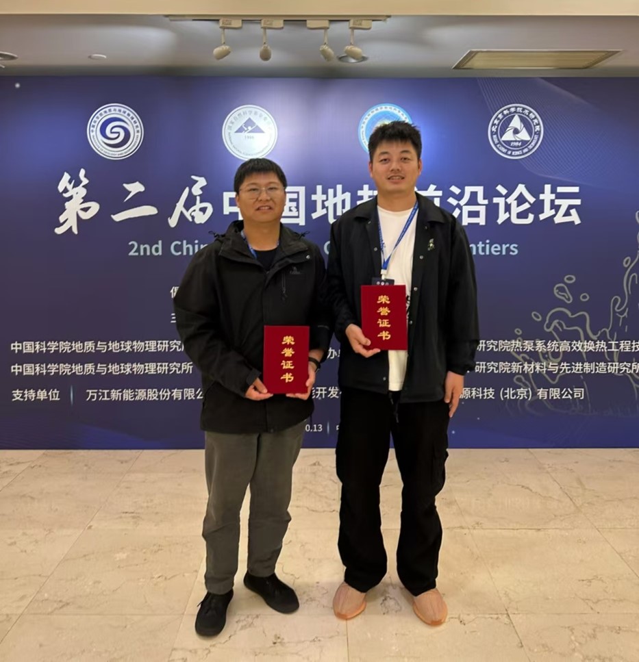 2024年10月12日至13日,在国家自然科学基金委地球科学部的倡议下,由中国地球物理学会地热专业委员会主办、中国科学院地质与地球物理研究所承办的第二届中国地热前沿论坛在北京隆重召开,近500名地热行业的代表及嘉宾出席大会。437bwin必赢国际官网博士后祁凯、2022博士研究生刘健分别作了题为“鄂尔多斯盆地深层中上元古界-奥陶系热演史研究”和“渭河盆地西安凹陷地热系统水文地球化学及成因机制”报告,并均获得大会优秀青年报告奖。报告分别详细介绍了鄂尔多斯中元古界-奥陶系早期地温场、热演化历史及渭河盆地地热田水化学特征、成因相关方面最新研究进展,会场讨论激烈,引起了与会代表的广泛关注。