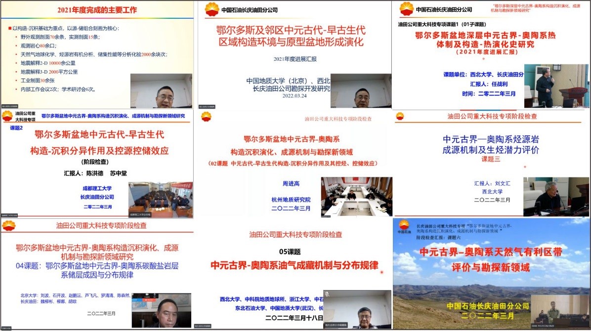 3月24日至25日,由我校联合中国地质大学、北京大学、成都理工大学等单位共同承担的中国石油长庆油田分公司科技重大专项“鄂尔多斯盆地中元古界-奥陶系构造沉积演化、成源机制与勘探新领域”项目阶段检查在线视频会议顺利召开。会议旨在落实项目总体设计的阶段任务实施和完成情况,同时听取各课题主要认识和汇报,深化交流并提升认识,进一步推进各课题之间以及科学研究与生产实践的相互融合。本次会议共设长庆油田主会场和西北大学、北京、成都、杭州、昆明等5个分会场。来自中国石油长庆油田分公司、北京大学、中国地质大学(北京)、成都理工大学、中国石油杭州地质研究所、中科院地质与地球物理研究所及我校等60多位专家学者与会。