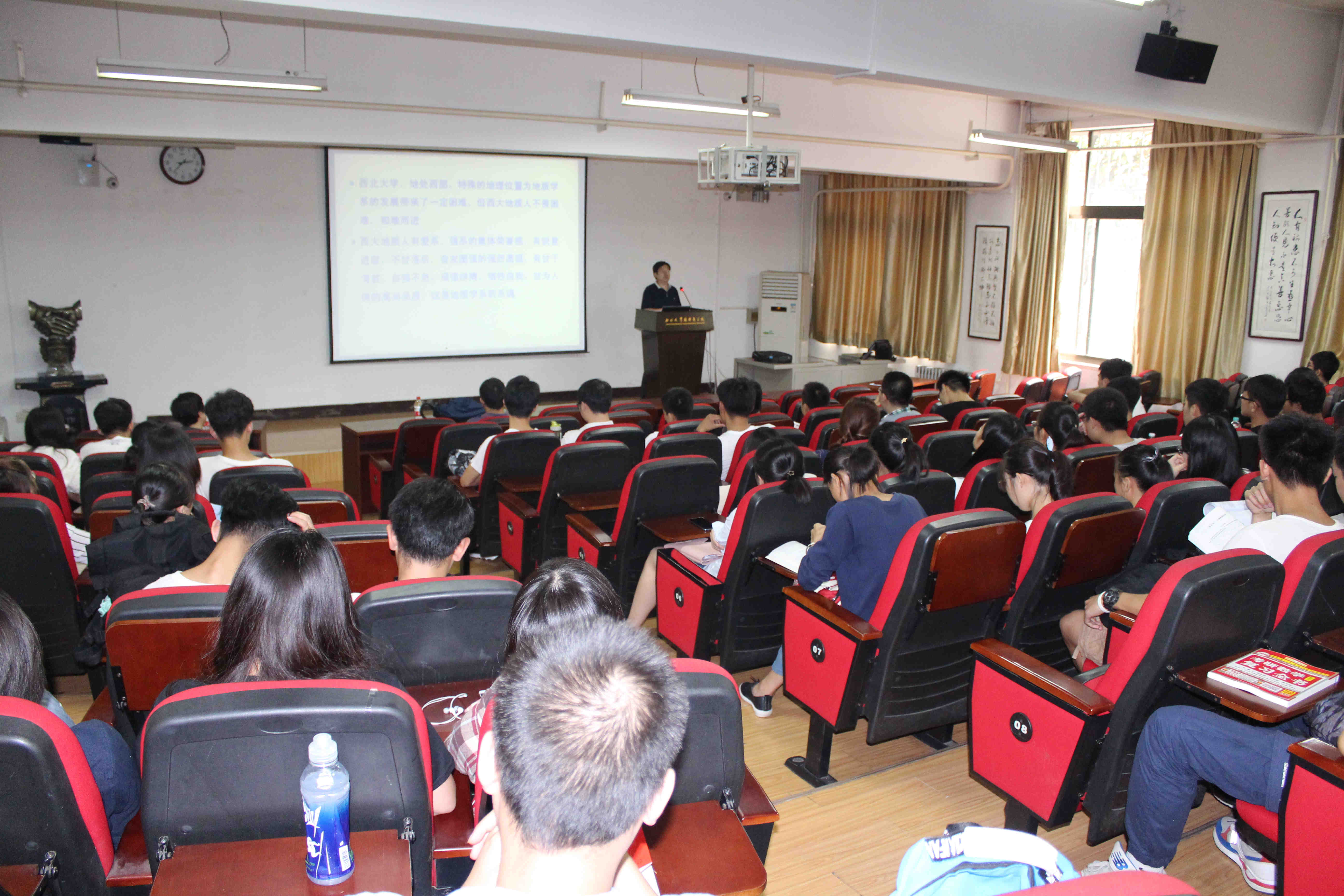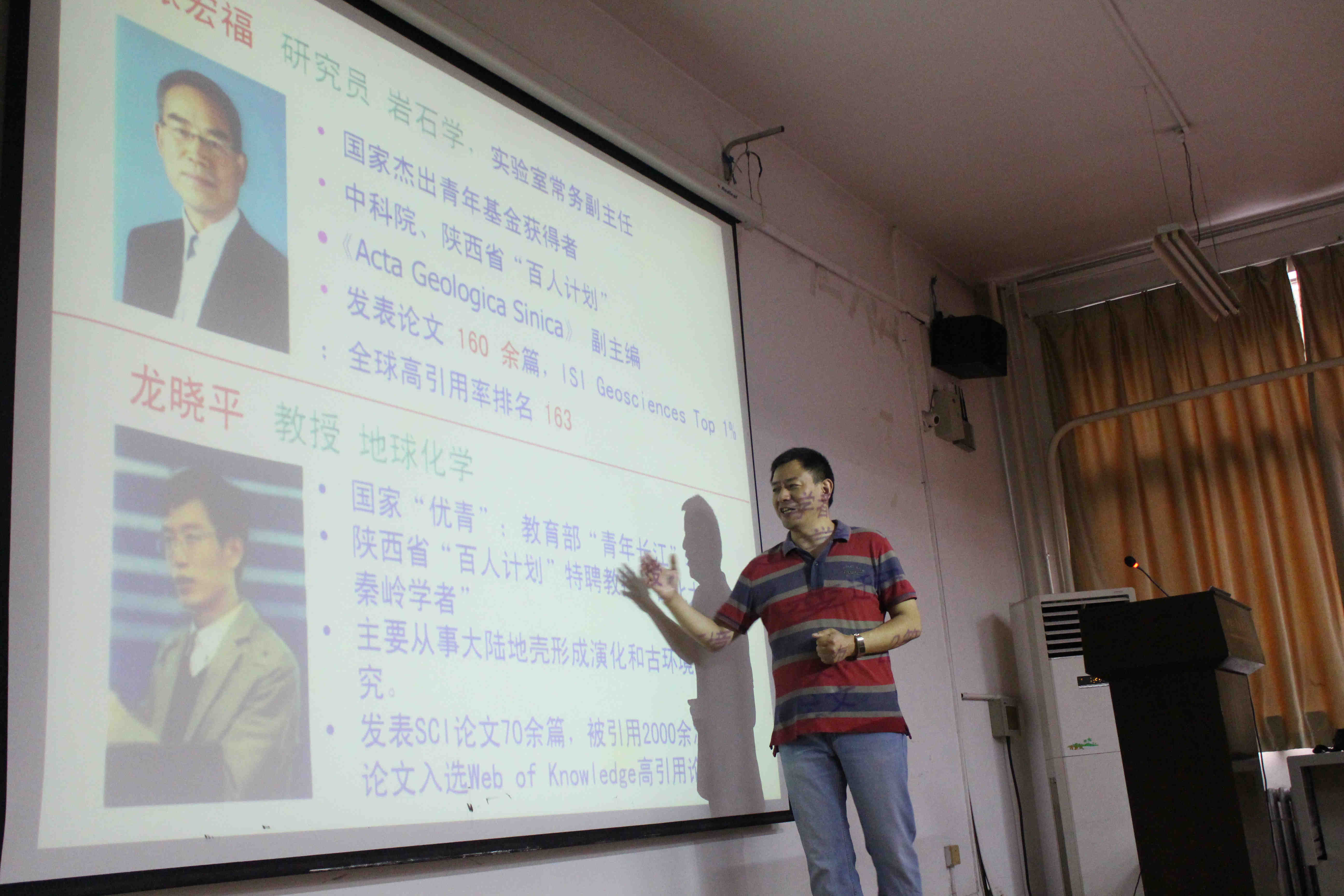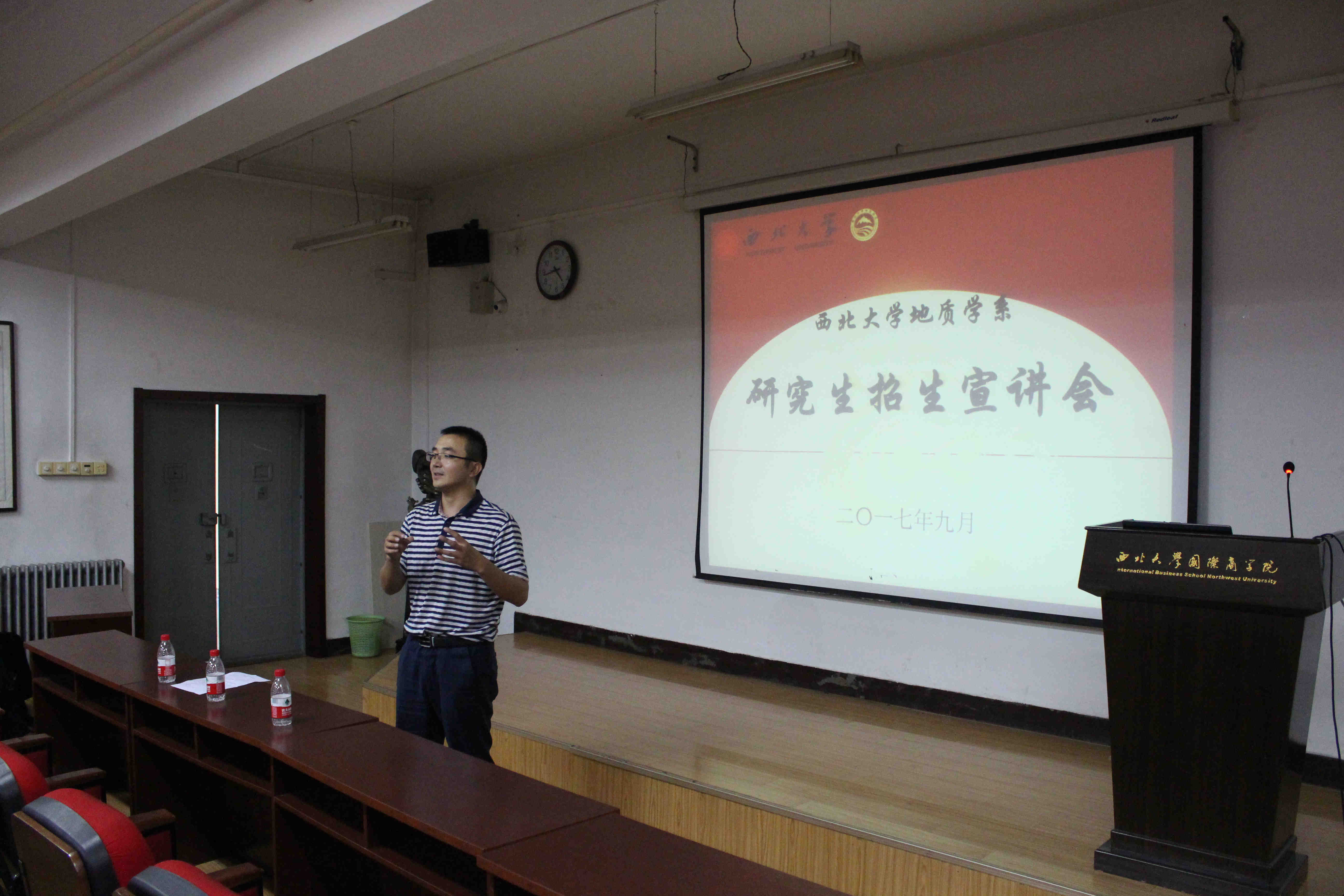 9月18日和19日下午,地质学系2018年研究生招生宣讲会在太白校区顺利举行。地质学系主任华洪教授、大陆动力学国家重点实验室主任董云鹏教授、系副主任陈丹玲教授、系副主任张小莉教授、地质工程教研室王家鼎教授出席了宣讲会。会议由地质学系党委副书记李青彦主持。