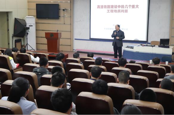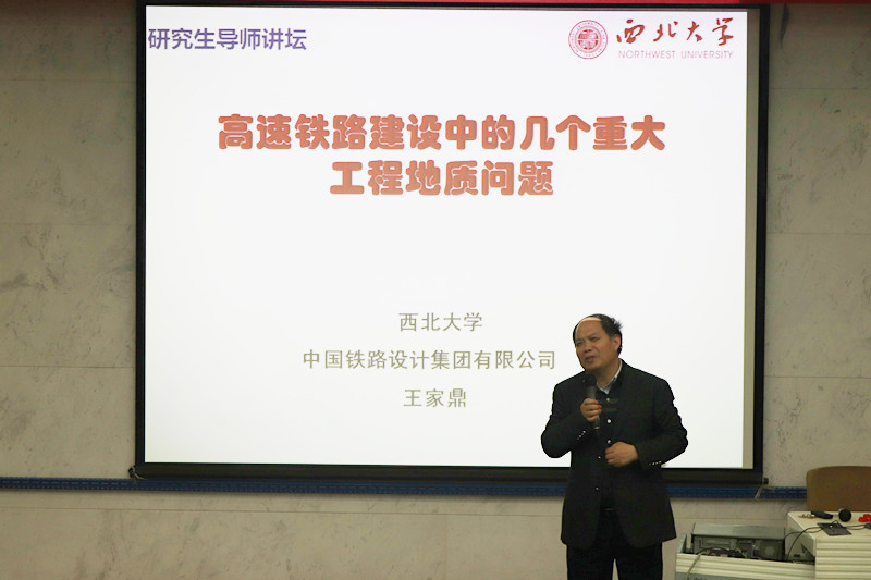 410日,由研究生院、研究生工作部主办,地质学系承办的“导师讲坛”第一百一十八讲在太白校区伯声报告厅举行。地质学系王家鼎教授应邀作题为《高速铁路建设中的几个重大工程地质问题》的专题学术报告,全校100余名师生聆听了报告。报告由地质学系党委副书记李青彦主持。