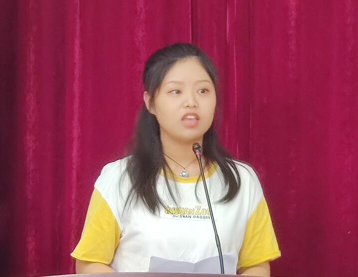 2019级本科生王靖怡代表本科新生发言,她感谢地质学系领导和师生的热情欢迎,也很荣幸成为地质学系大家庭中的一分子。她表示,自己一定会牢记地质人不怕吃苦,勇于探索的科学精神,努力学习,成为地质学系的骄傲。