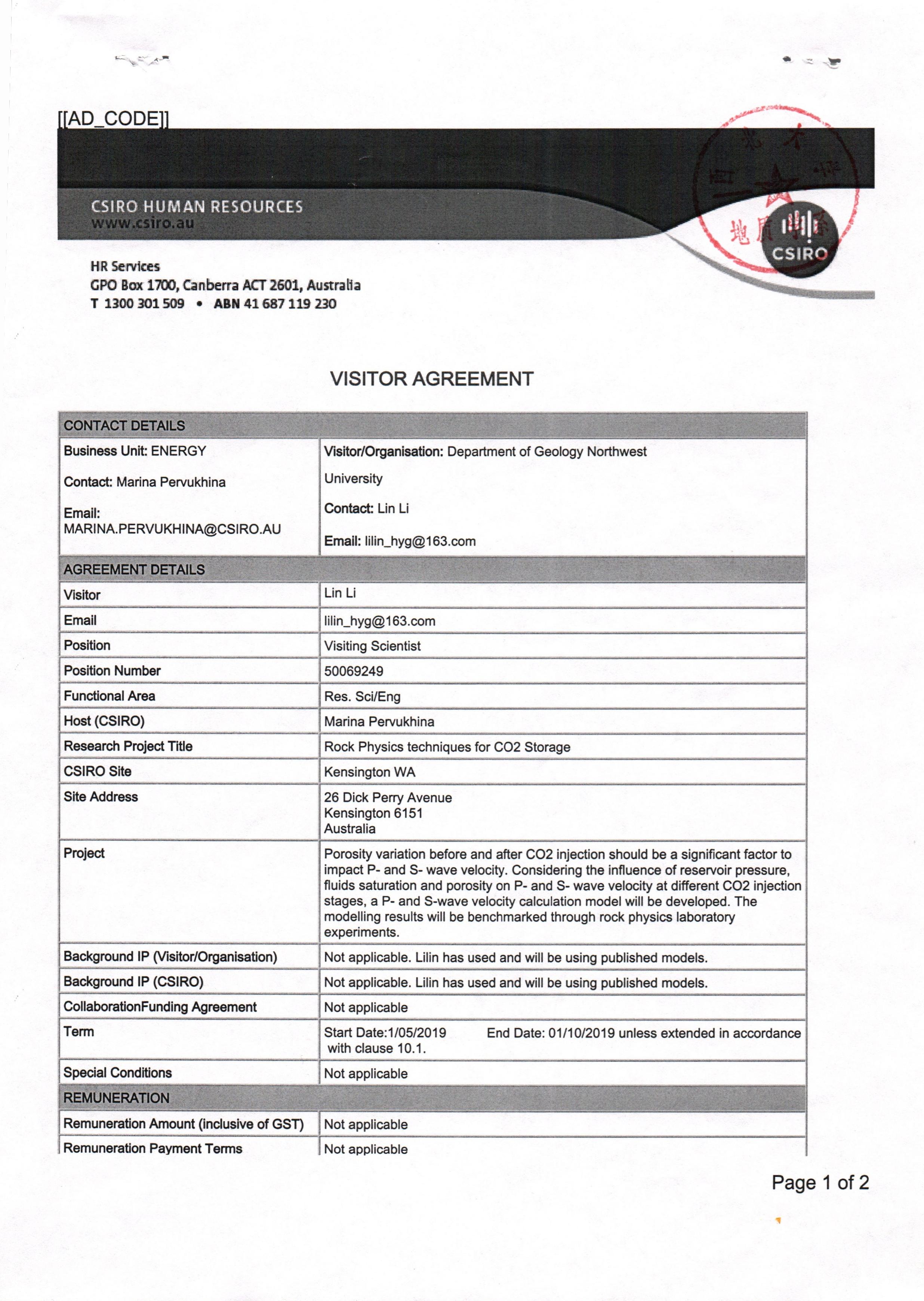 地质学系关于资助李琳出国(境)短期合作交流的公示