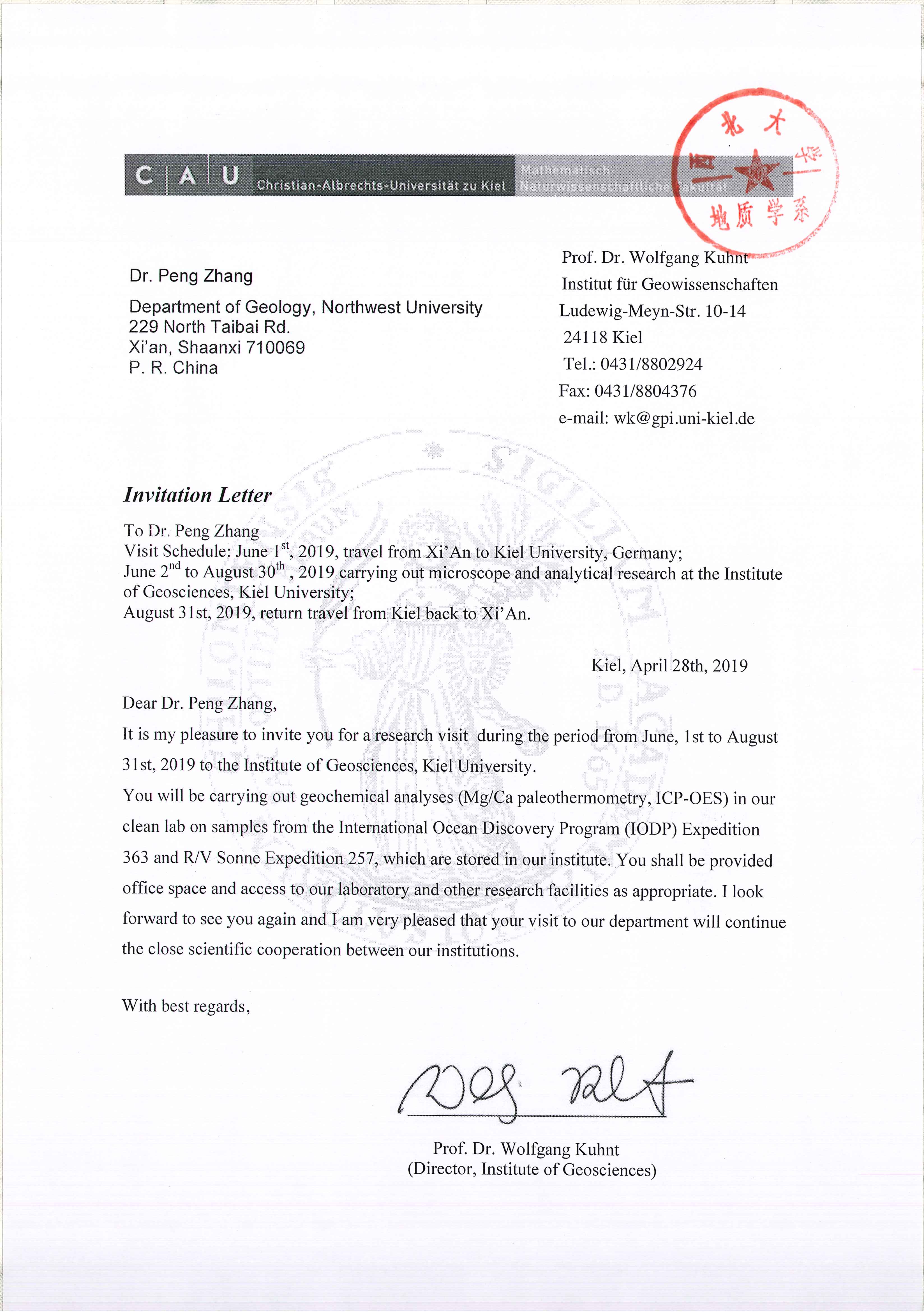 地质学系关于资助教师张鹏出国(境)短期合作交流的公示