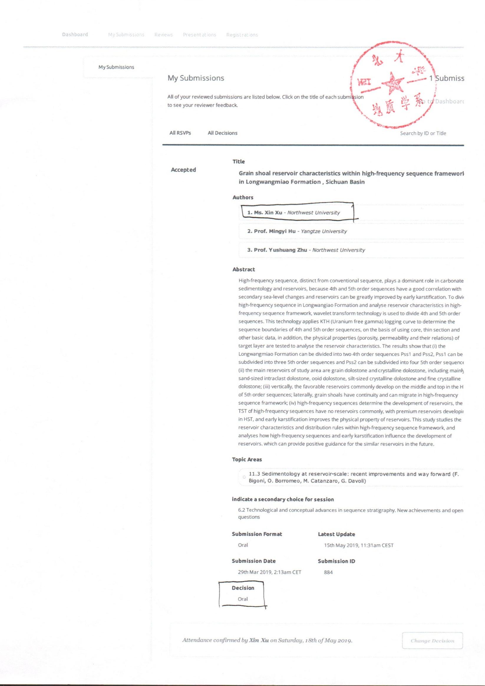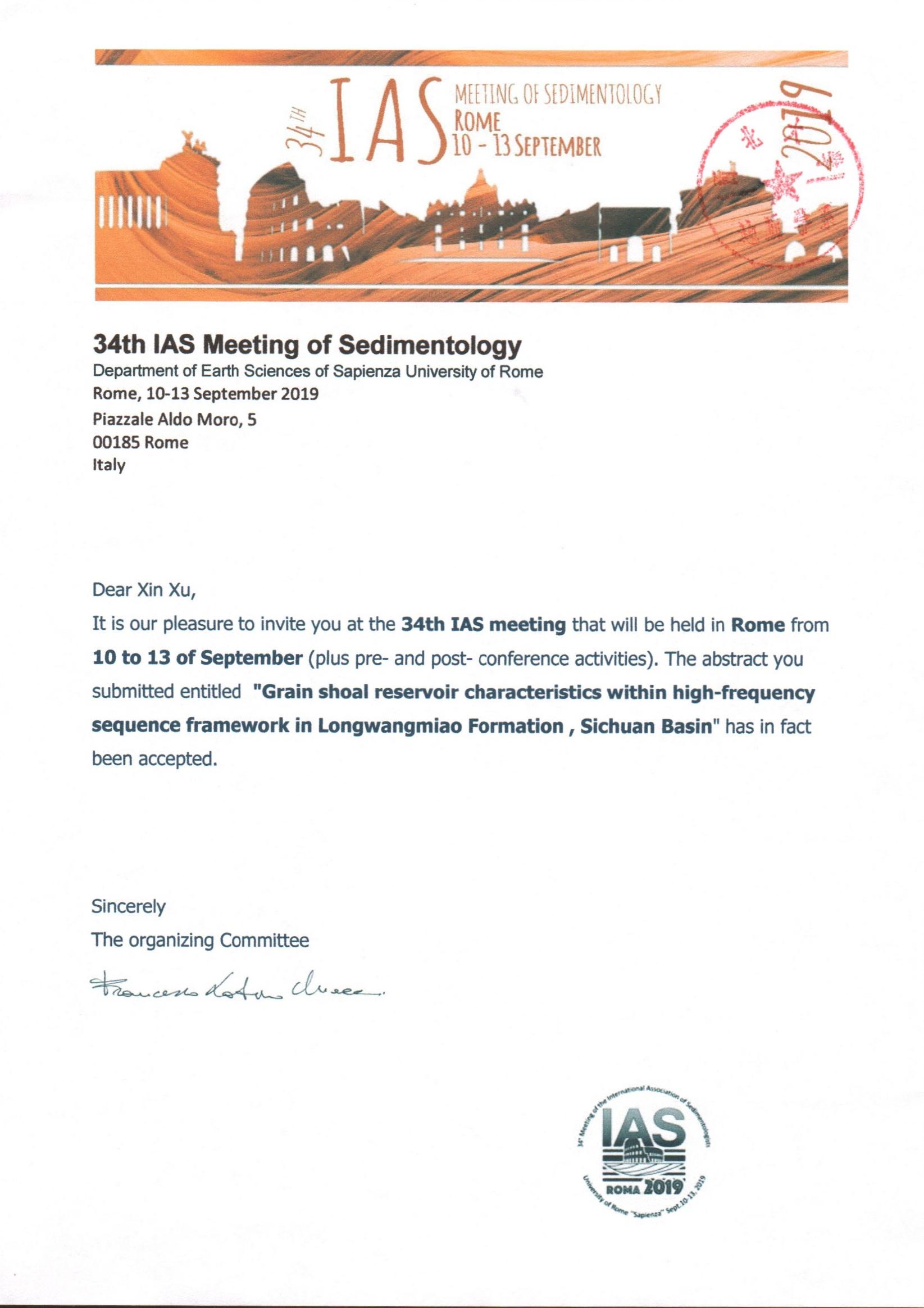 地质学系关于资助研究生徐欣出国参加学术会议的公示