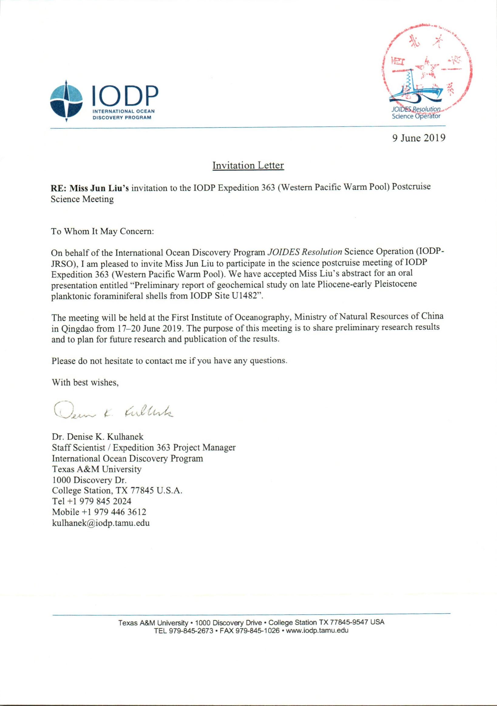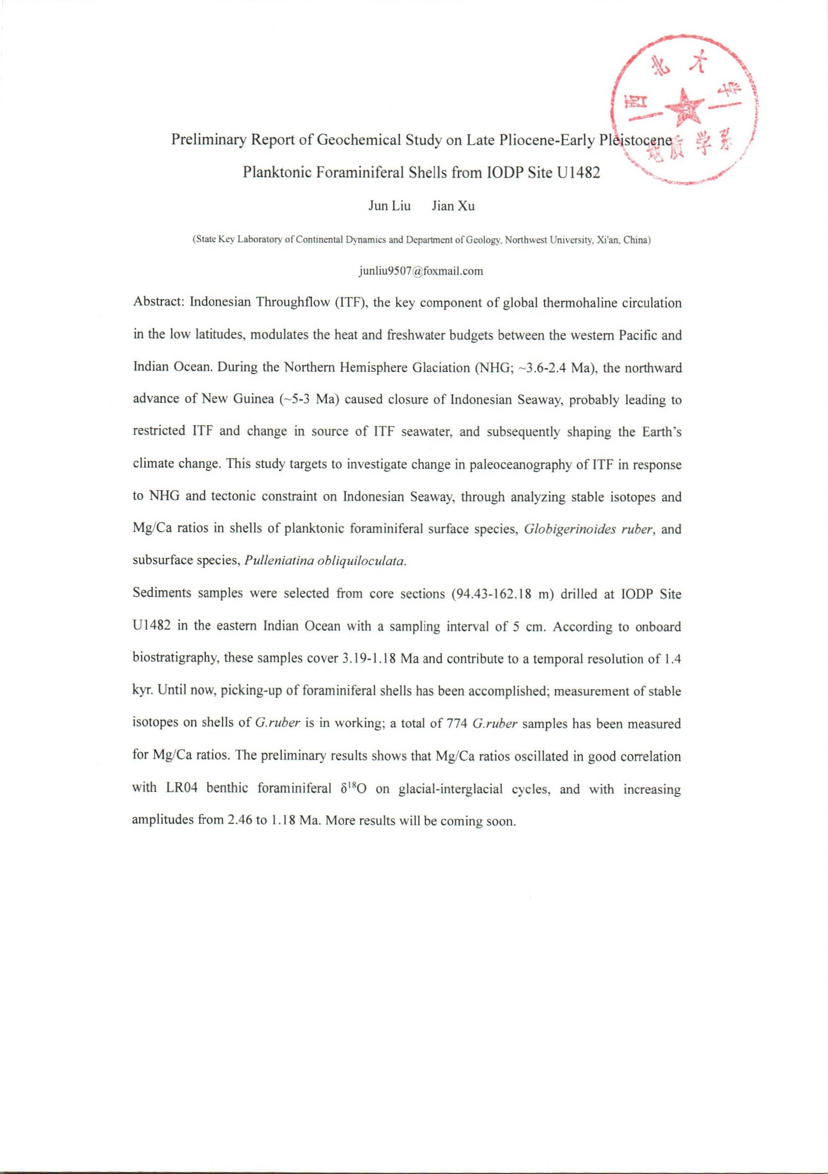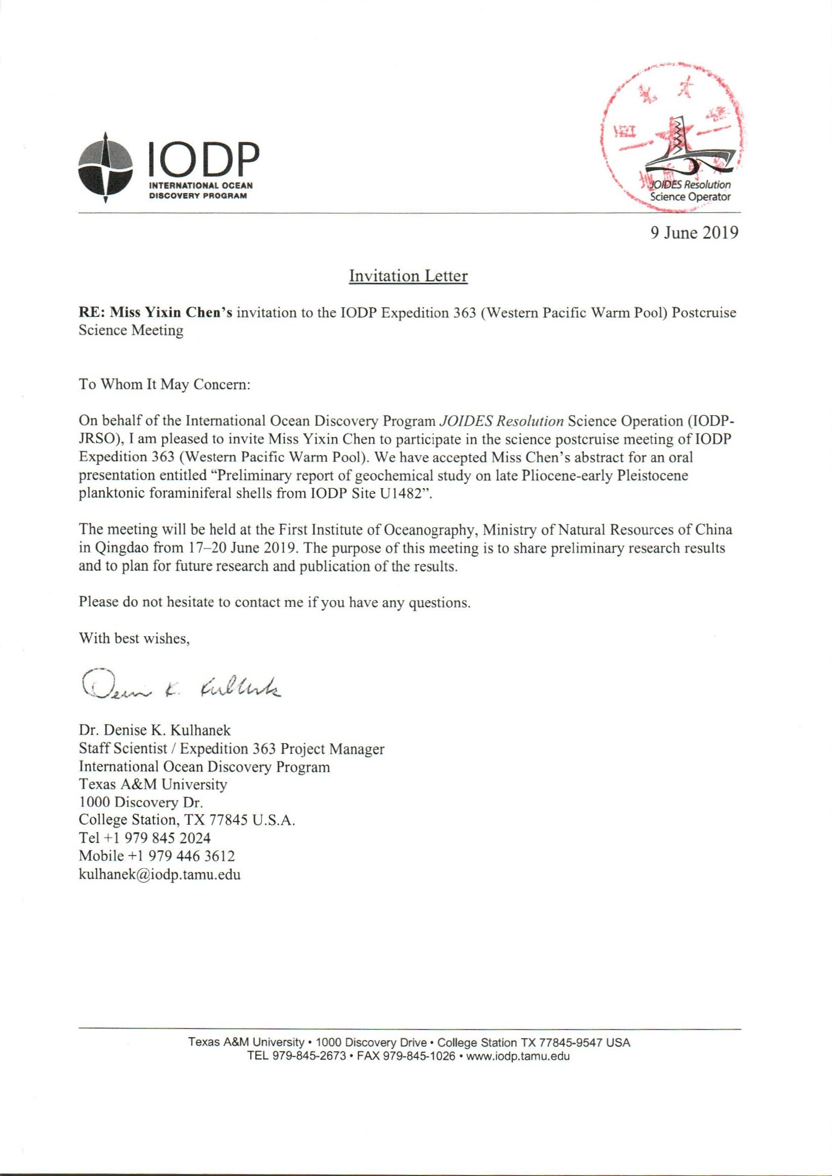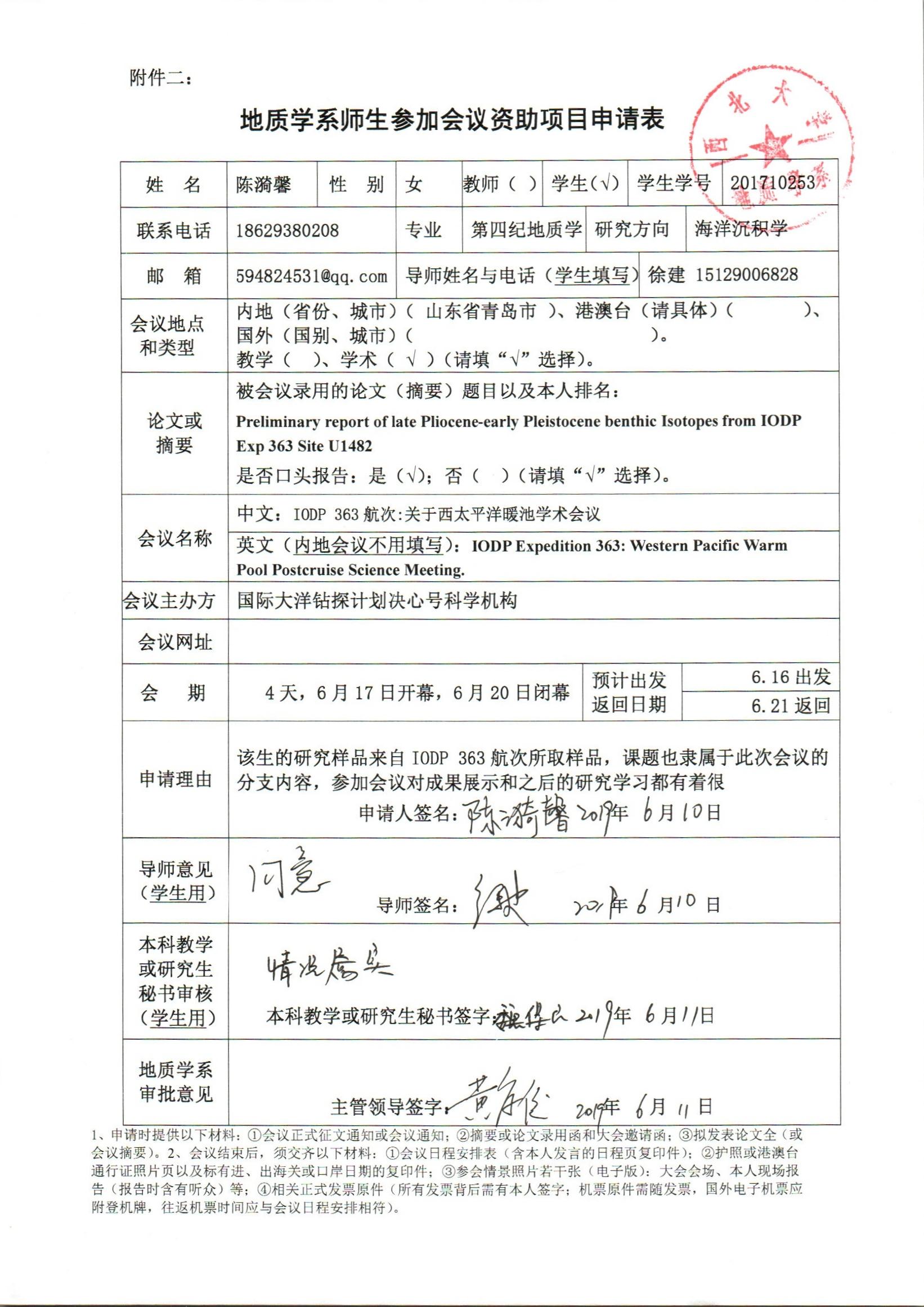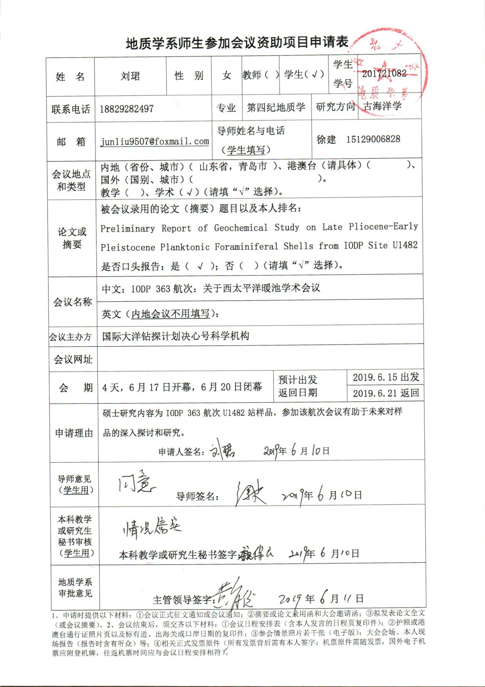 地质学系关于资助研究生陈漪馨、刘珺参加学术会议的公示