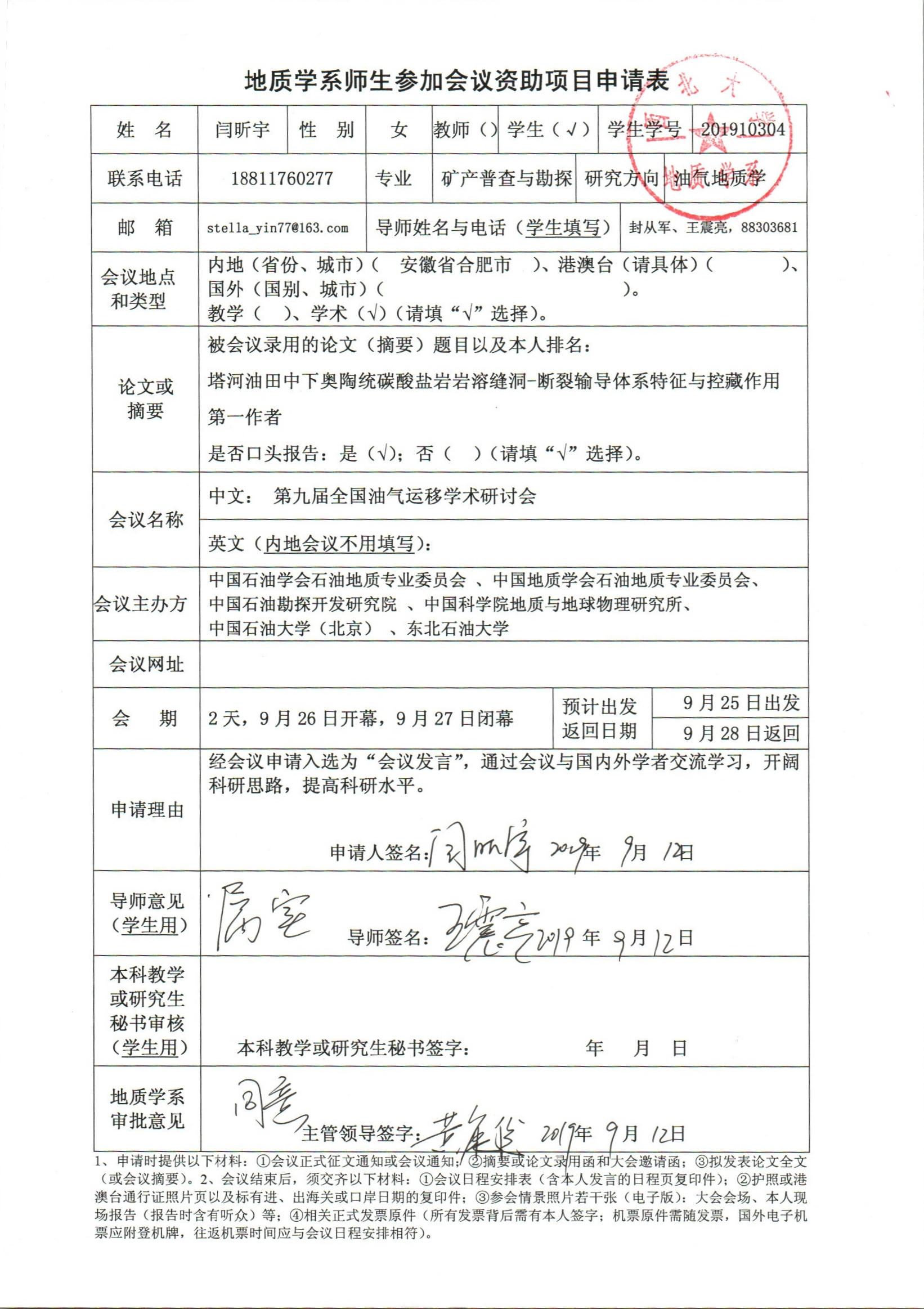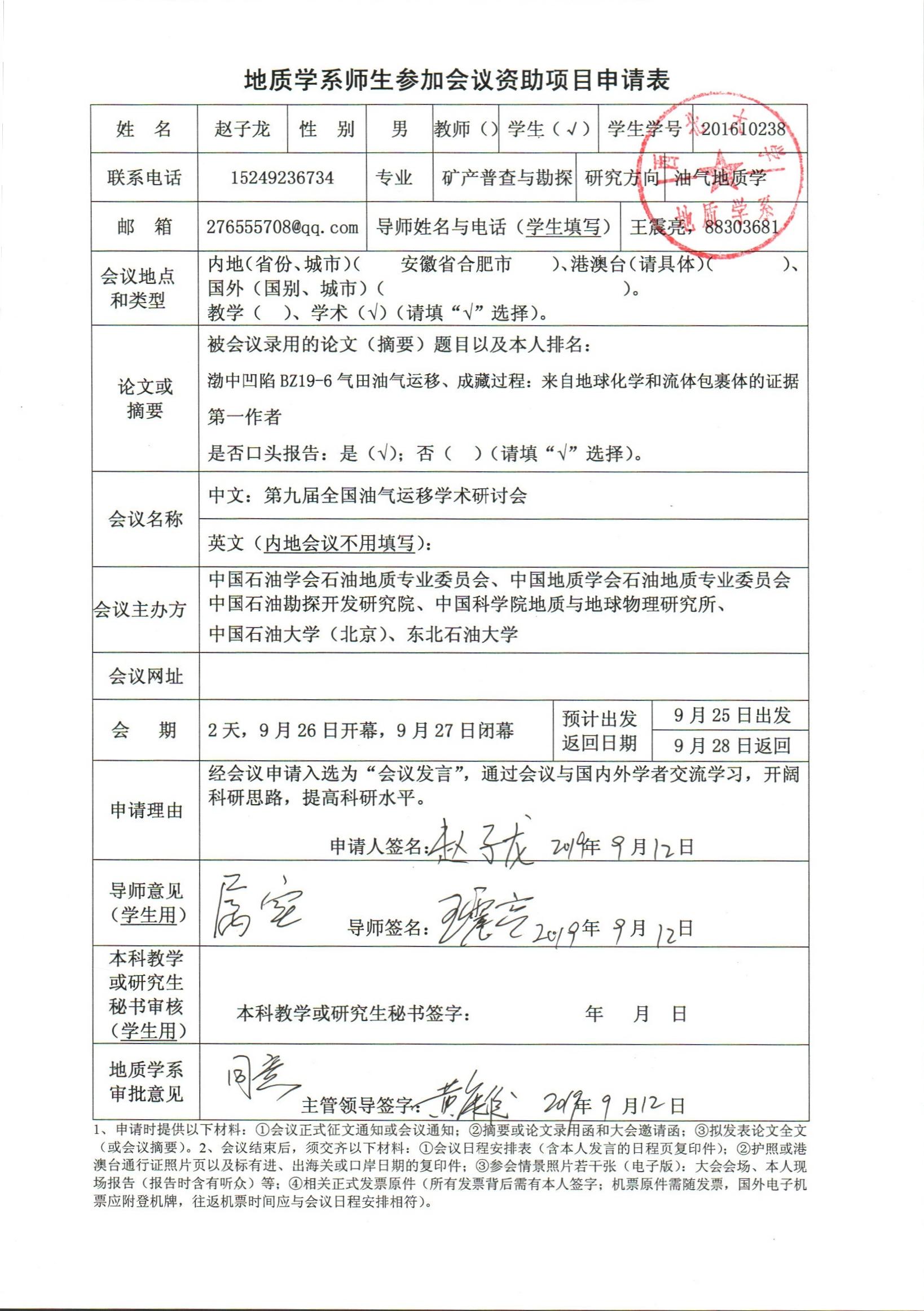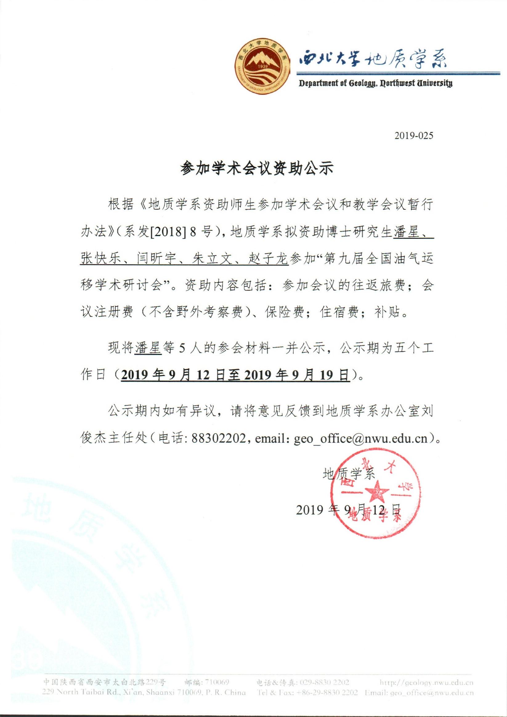 地质学系关于资助研究生潘星等5人出国参加学术会议的公示
