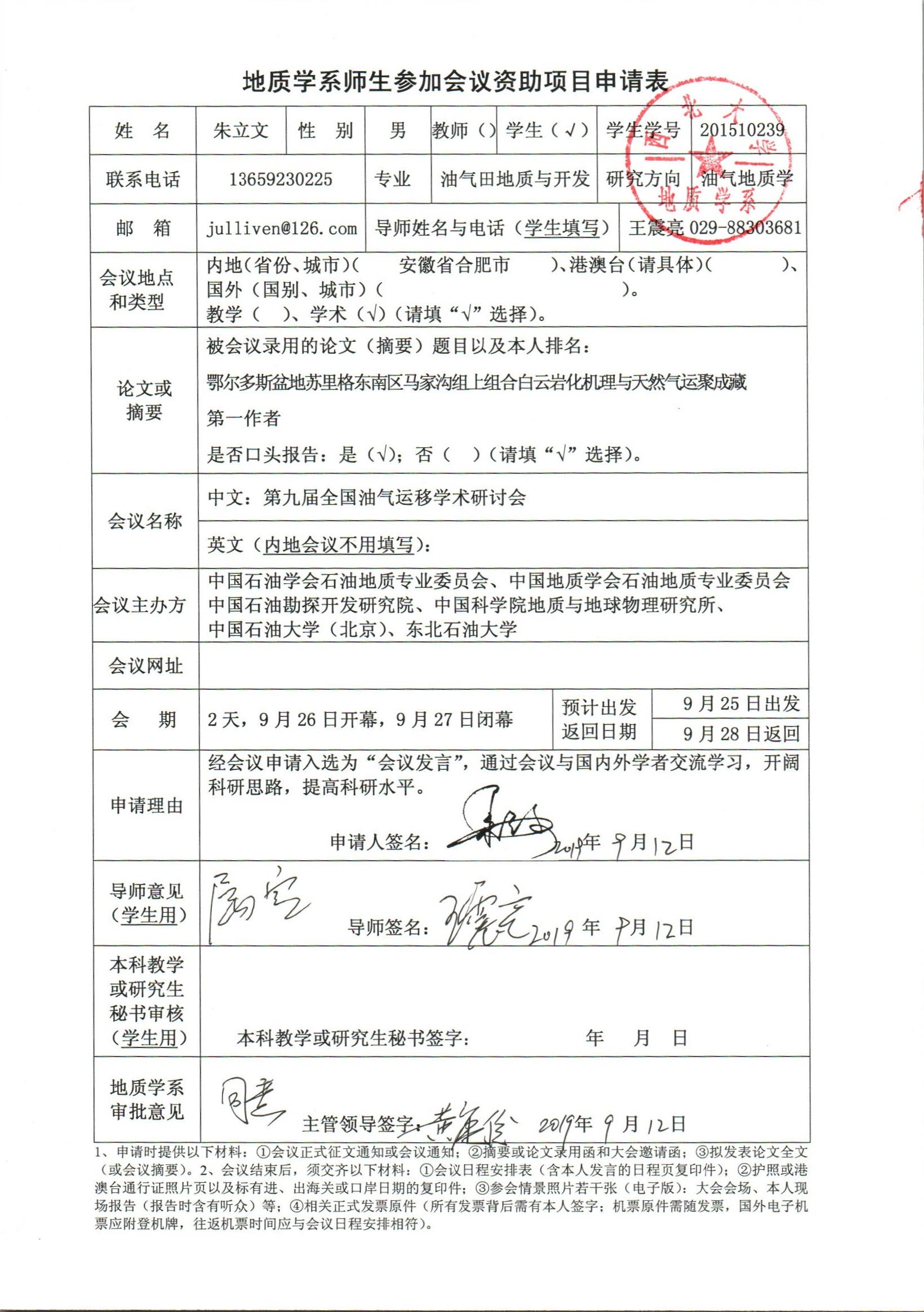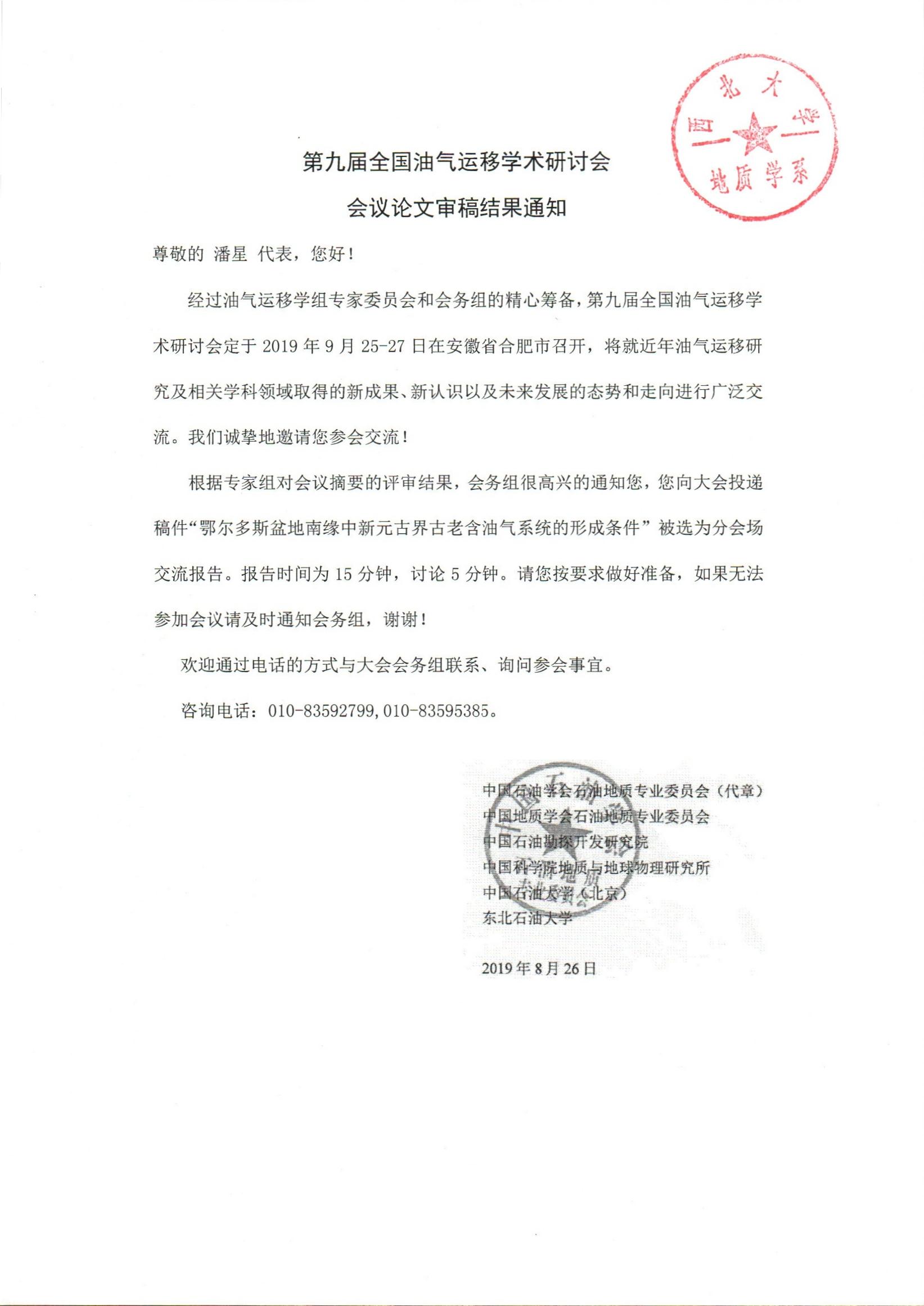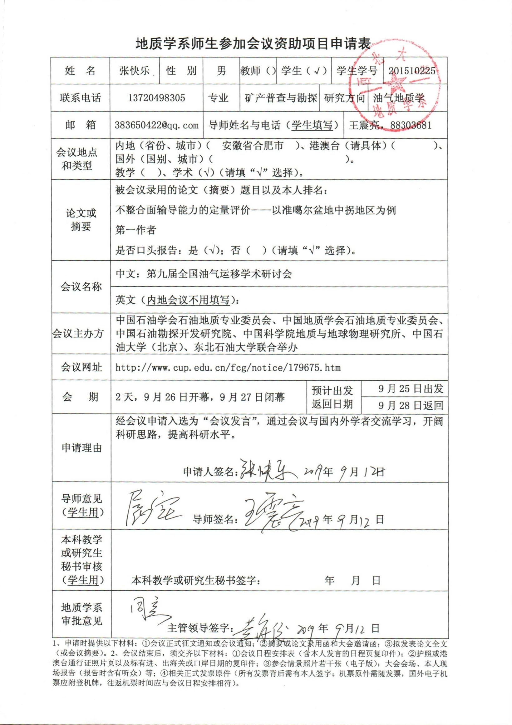 地质学系关于资助研究生潘星等5人出国参加学术会议的公示