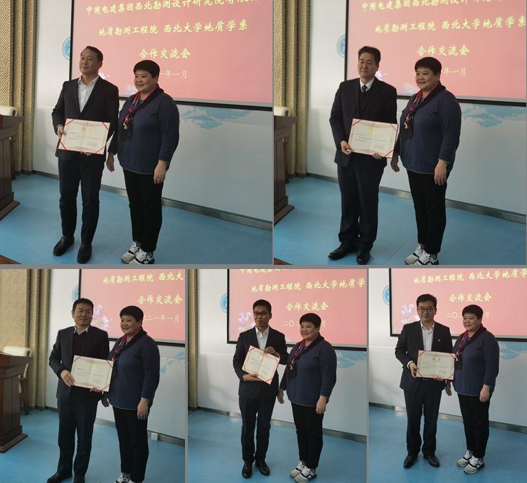 会上,中国电建西北院副总工巨广宏和张志飞分别介绍了双方单位情况,王家鼎介绍了437bwin必赢国际官网地质工程学科研究进展。杨晶为中国电建西北院专家颁发聘书。
