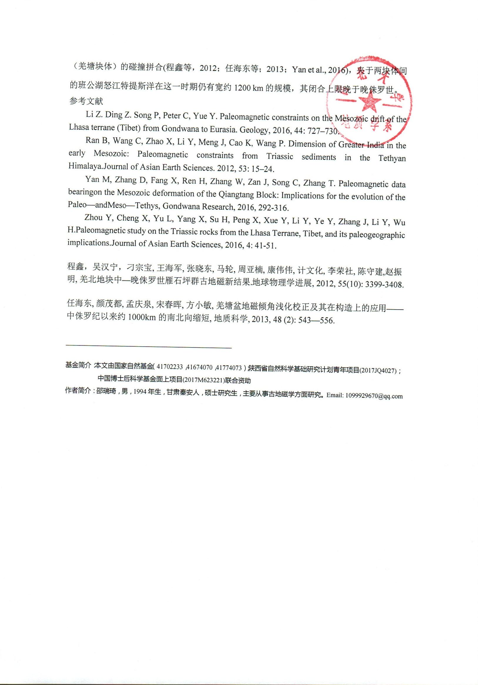 地质学系关于资助邵瑞琦同学参加学术会议的公示