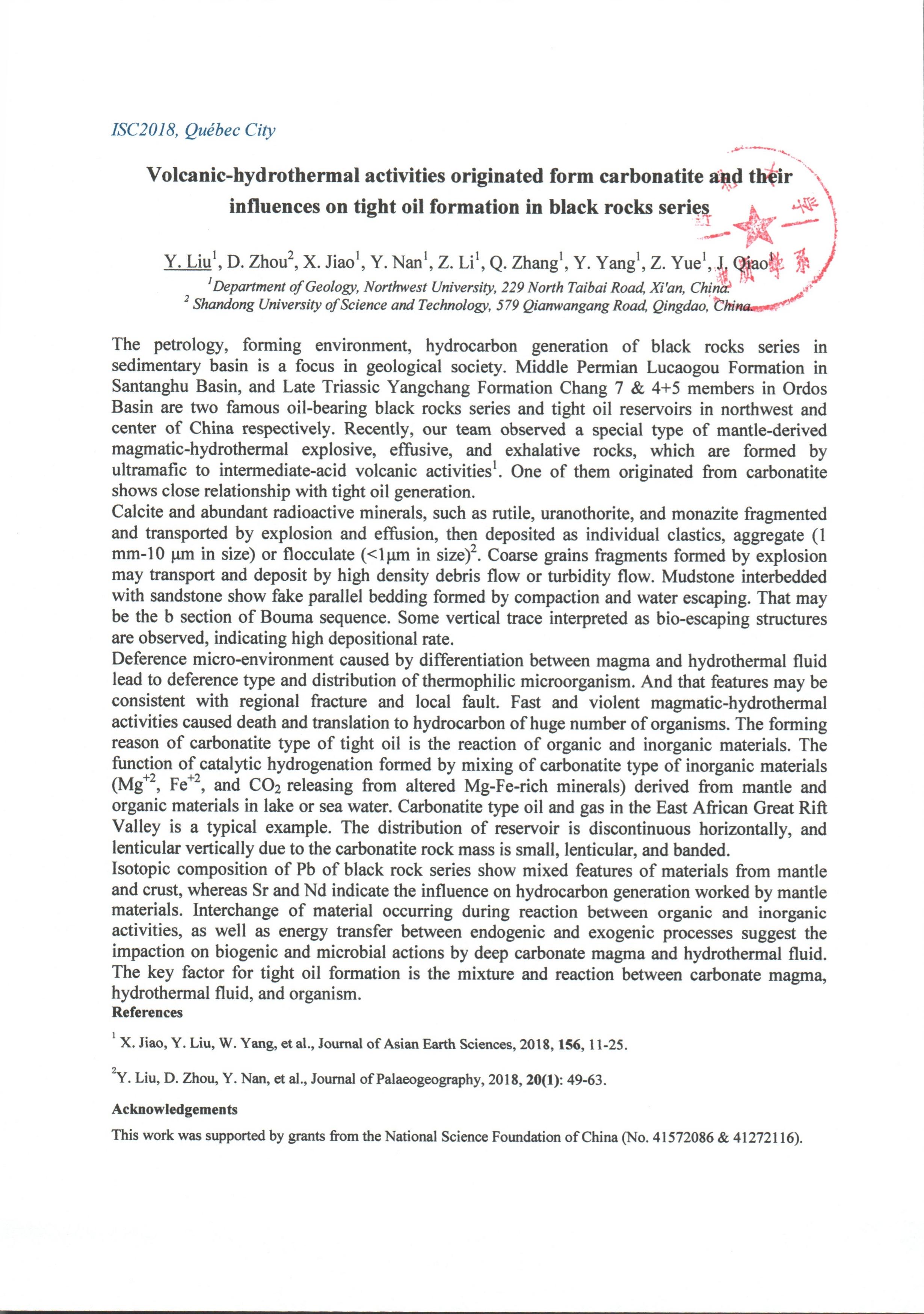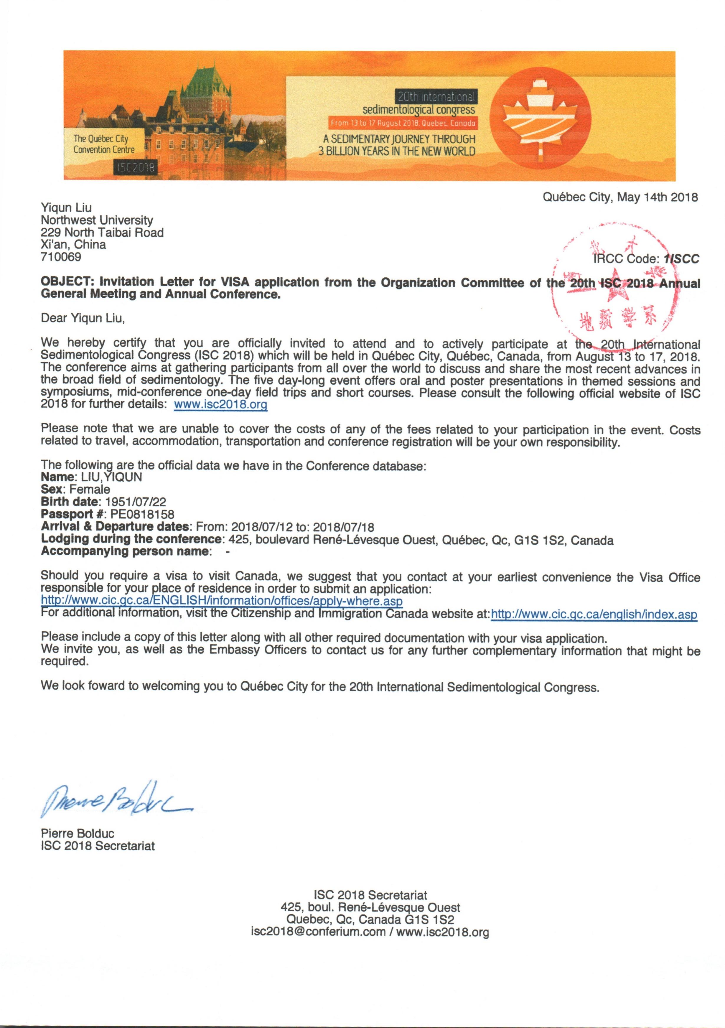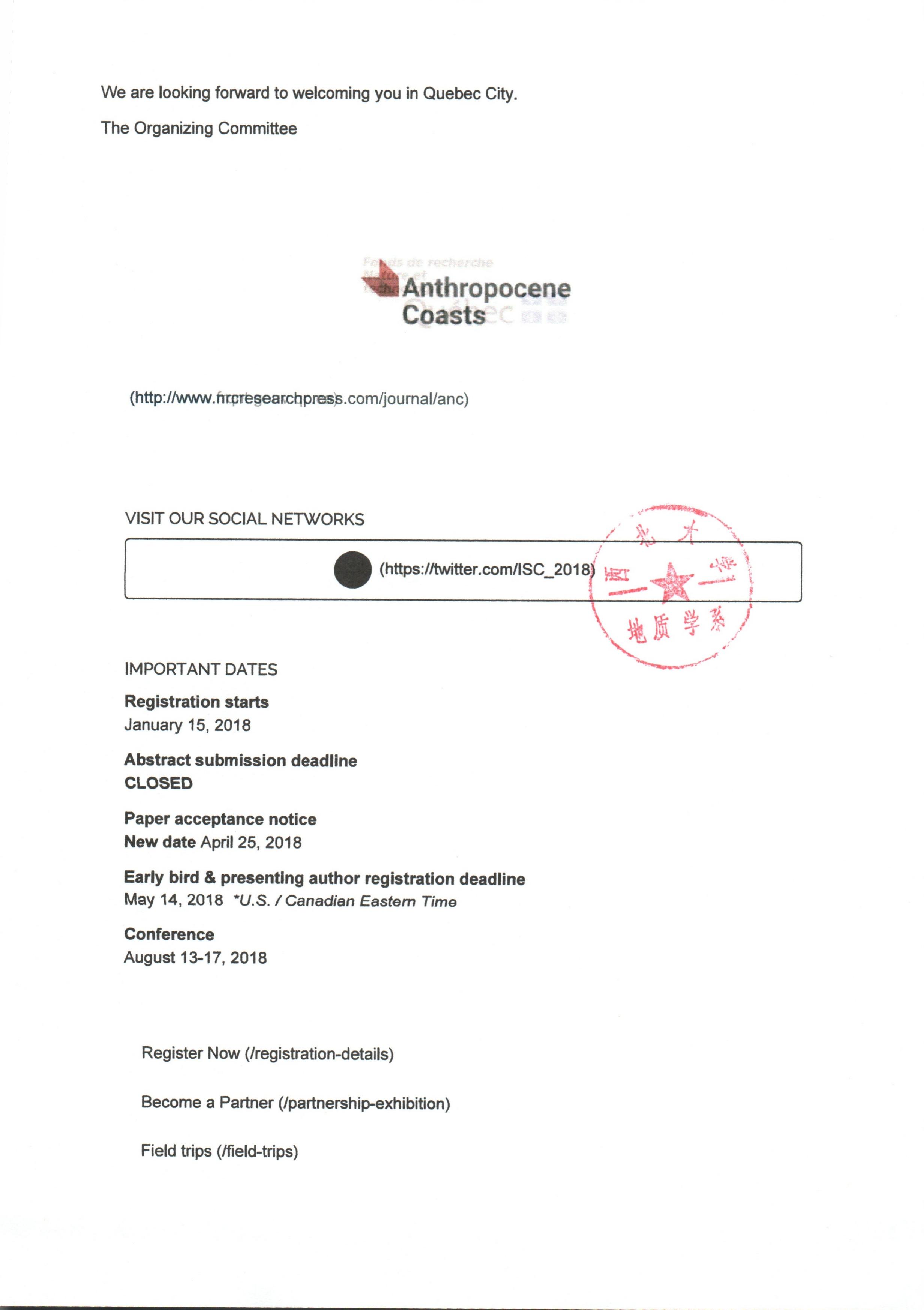 地质学系关于资助柳益群老师参加学术会议的公示