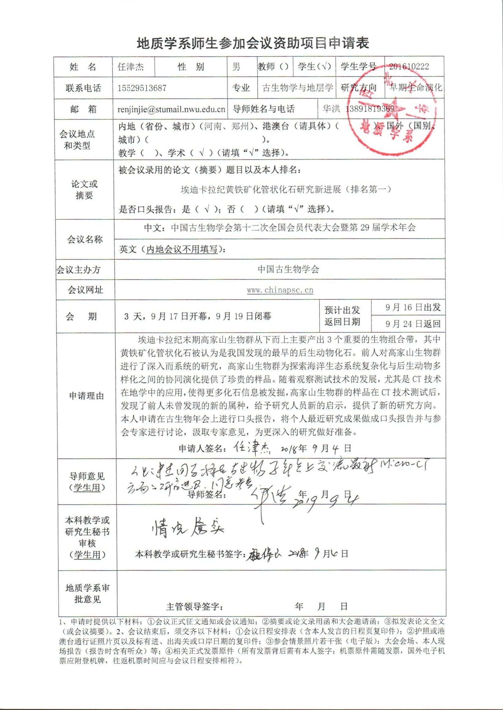 地质学系关于资助闵筱、任津杰、赵文钰三位同学参加学术会议的公示
