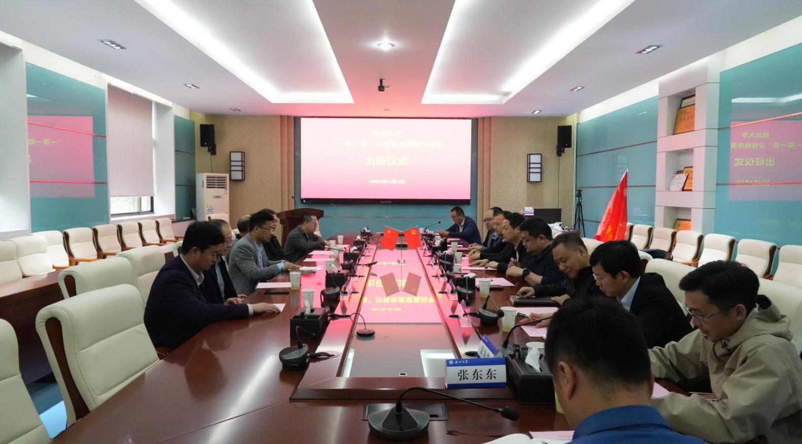 4月3日上午,437bwin必赢国际官网“一带一路”沙特地质填图科考出征仪式在太白校区钟健报告厅隆重举行,校党委常、副校长陈富林出席仪式。西北大学“一带一路”沙特地质填图科考队、地质学系领导班子参加活动。