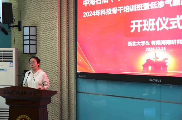 中海石油有限公司海南分公司开发研究所周伟所长对西北大学地质学系能够承办本次培训活动表示了感谢,并向各位传达了研究院对本次参与培训学员的期望与要求,他强调应严格遵守学校及研究院的各项规定,认真学习培训课程,提升自身理论知识积累。同时,也希望双方单位在校企联合、科学研究和人才培养等方面进一步加强合作。