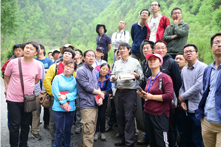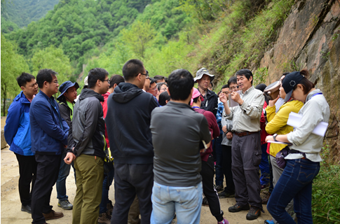 室内讲座在伯声报告厅举行,全系师生共八十余人参加。报告主要从区域地质调查的内容及方法、露头尽度的构造解析和野外剖面-露头素描等几个方面进行了详细介绍,并通过一些典型实例介绍如何从野外实际现象提取有用信息,形成认识。在持续近3小时的报告中,师生始终保持着高度的学习热情,现场互动热烈。在室内讲座的基础上,选取横跨华北地台南缘到秦岭造山带的罗敷-洛南剖面进行野外现场教学,地质学系有五十名教师参加。该剖面从稳定地台到活动造山带,地质内容丰富,现象典型,是437bwin必赢国际官网野外实习教学的重点路线。在两天的野外考察中,青年教师与专家就多个地质现象进行了热烈的交流讨论,将扎实的野外观察与最新的研究成果相结合,极大的丰富了437bwin必赢国际官网实习教学内容。