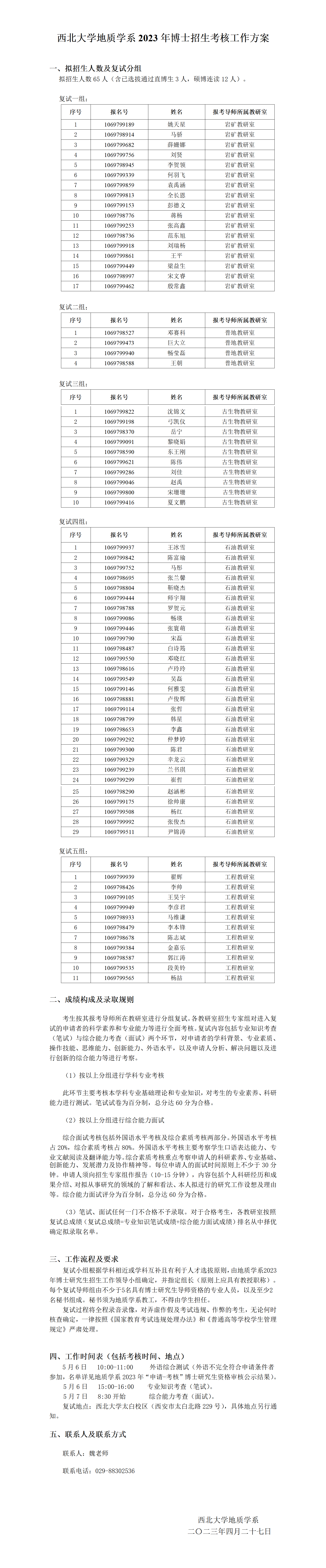附件:西北大学地质学系2023年博士招生考核工作方案