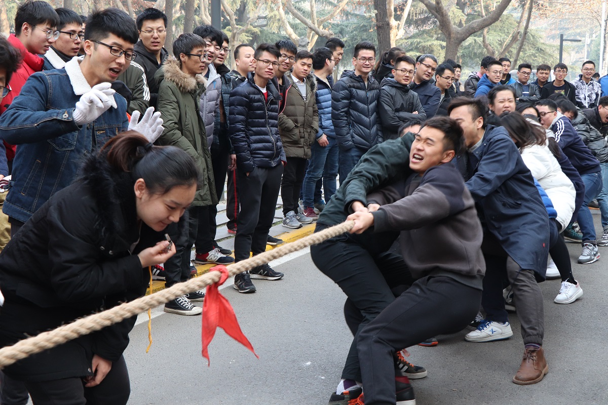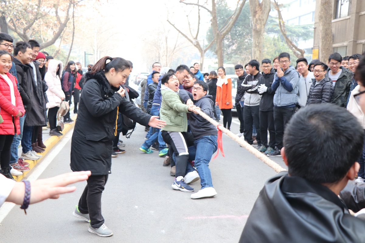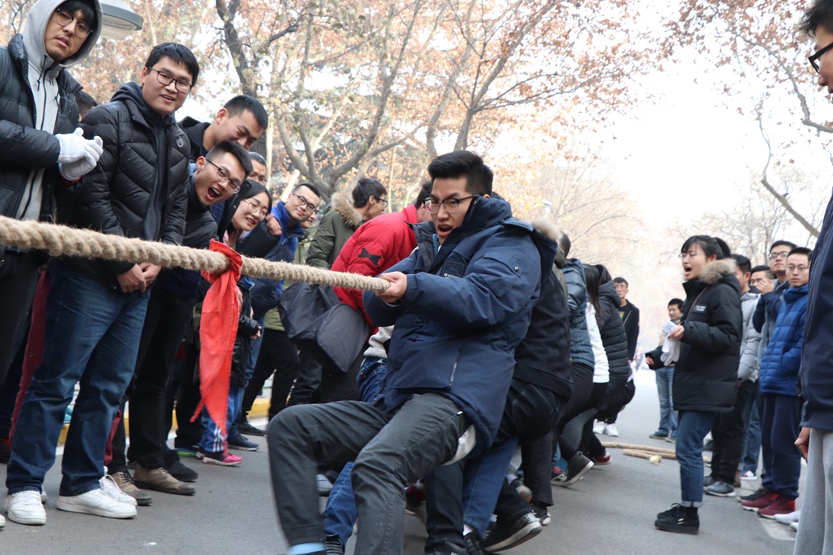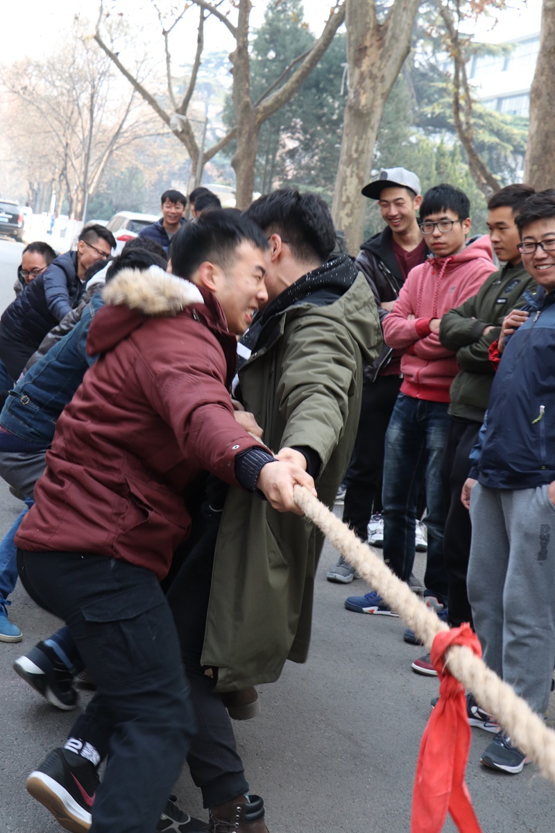 1227日中午,437bwin必赢国际官网研究生在系楼前广场举行了第二届拔河比赛,共有11支队伍参加。经过激烈角逐, 2015级理科队最终成功卫冕,荣获冠军;2016级工硕班获得亚军;2015级工科队获得季军。