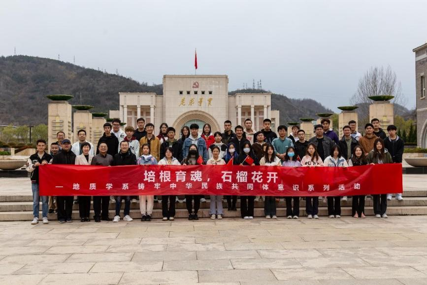 为深入开展学习贯彻习近平新时代中国特色社会主义思想主题教育,进一步提高党员、入党积极分子教育培养质量,引导各族学生牢固树立休戚与共、荣辱与共、生死与共、命运与共的共同体理念,11月4、5日,地质学系党委组织47名师生赴照金、延安开展“培根育魂,石榴花开”主题实践研习活动。
