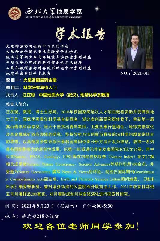 报告人:汪在聪中国地质大学(武汉)地球化学系教授